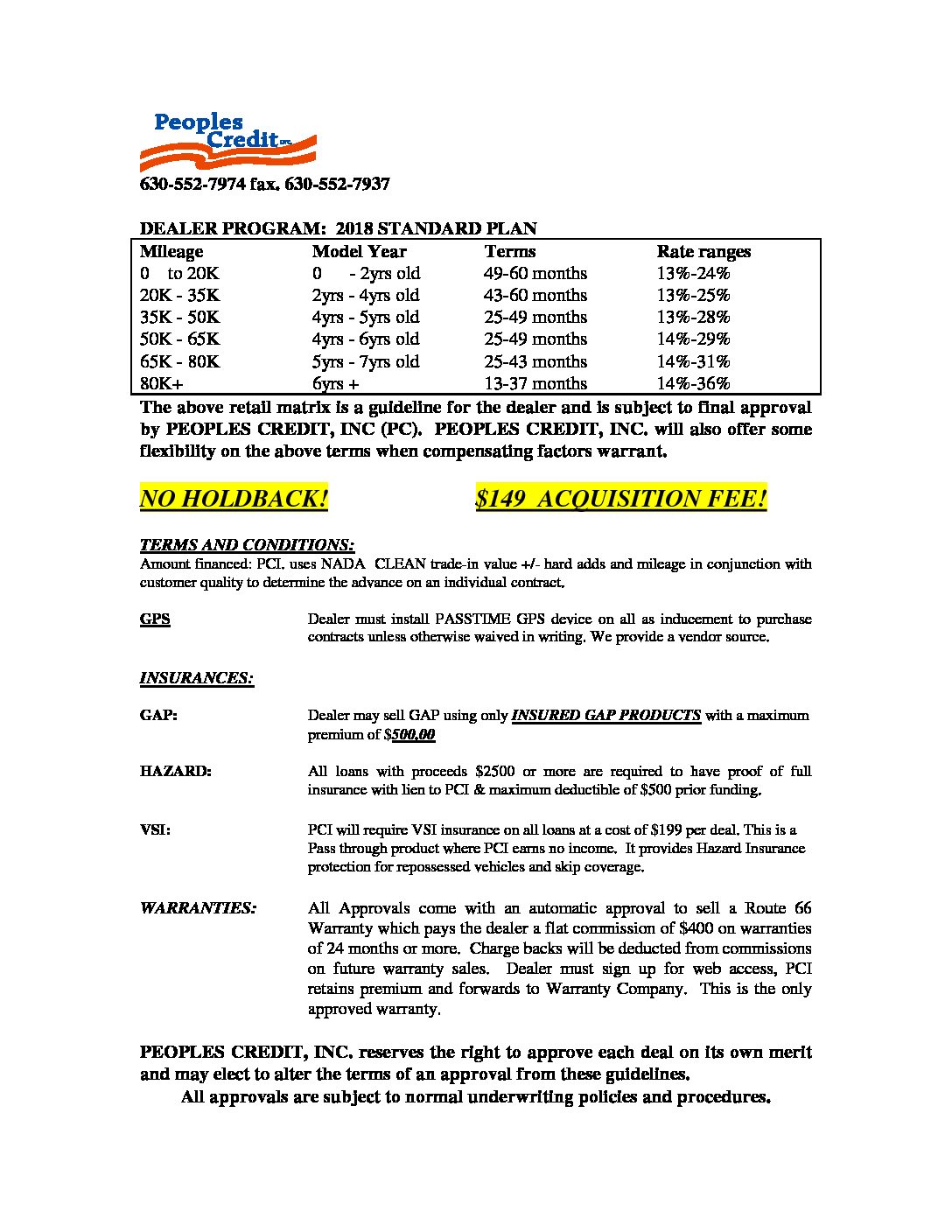 RETAIL AUTO PROGRAM 2018 SUBPRIME $15000 and under